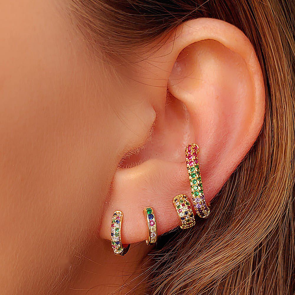 Brinco argola rainbow no ouro