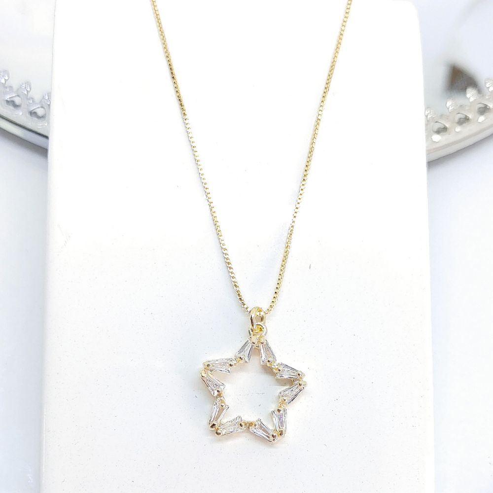 Choker com estrela de zircônia baguete ouro